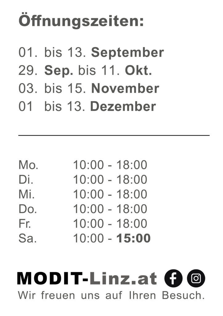 Entdecken Sie exquisite Mode, die Stil und Eleganz vereint – direkt im Herzen von Linz. Stilvolle Mode, die begeistert Öffnungszeiten